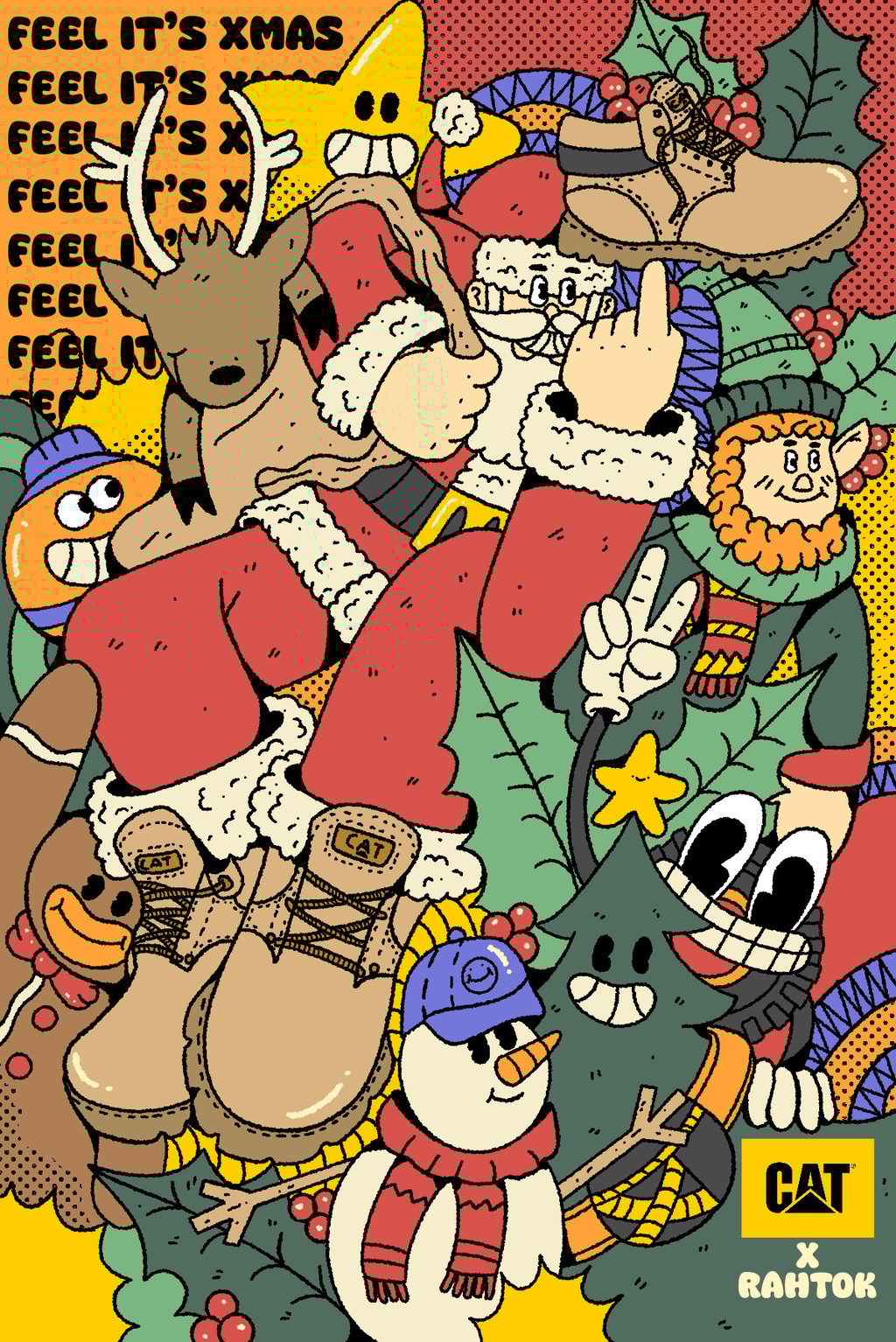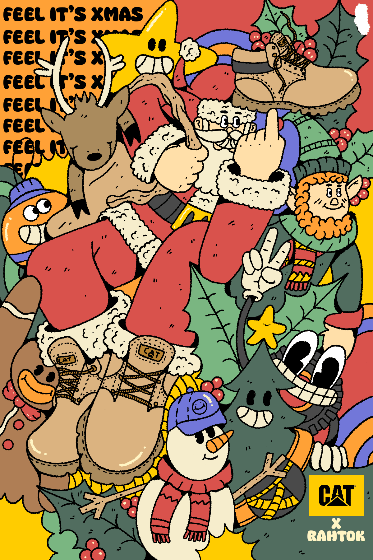 The illustration was created as part of a holiday campaign for CAT, with the goal of reinforcing emotional engagement with customers during the Christmas season.