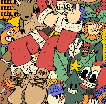 The illustration combines festive elements, characters, and symbols from the CAT universe, reinterpreted through my visual style to create a warm, expressive, and recognizable scene.