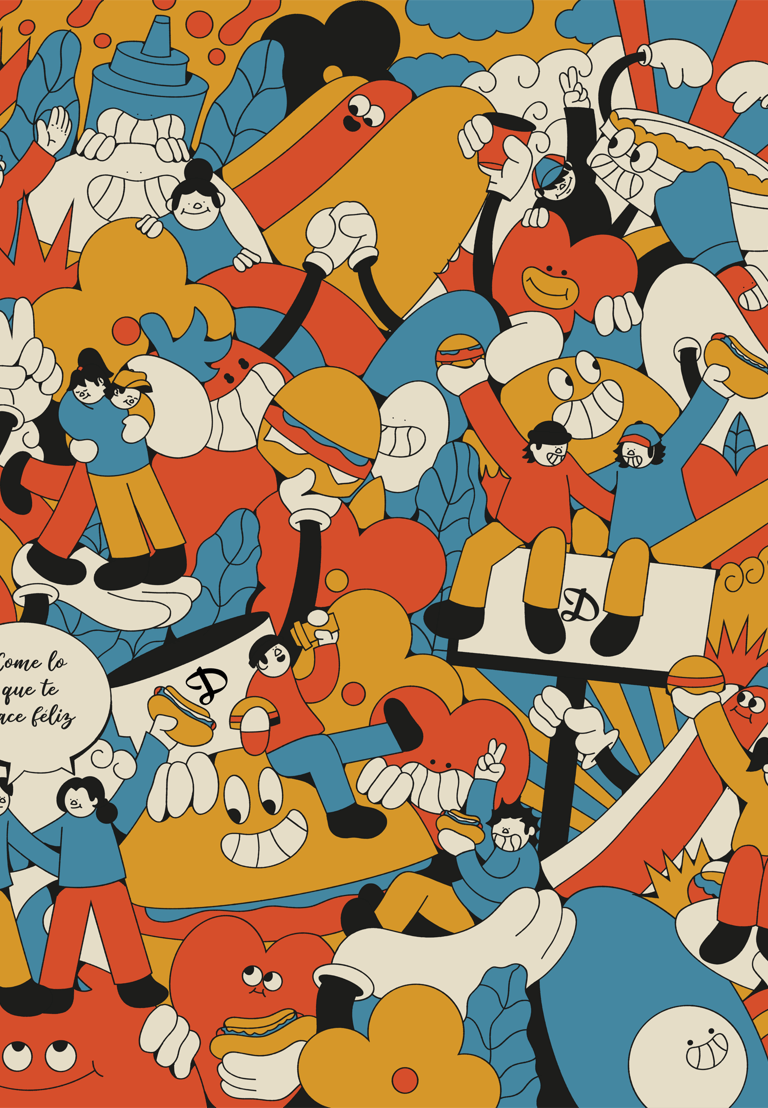 This collaboration was developed with Dominó, one of Chile’s most iconic restaurant chains, focusing on the creation of an illustration series applied to physical spaces, brand activations, and events, enhancing brand identity and customer experience.