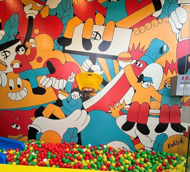 The illustrations add identity, movement, and character, turning the restaurant into a memorable and engaging space for customers.